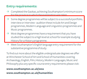 南安普顿大学2020年正式接受中国高考成绩申请艺术和人文学院的本科课程: