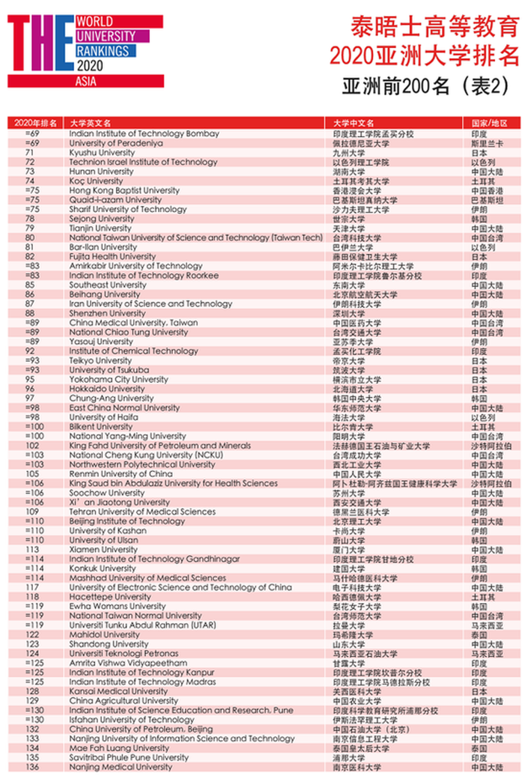 此外,6月3日北京时间下午5点,泰晤士高等教育发布了第8届亚洲大学排名。
