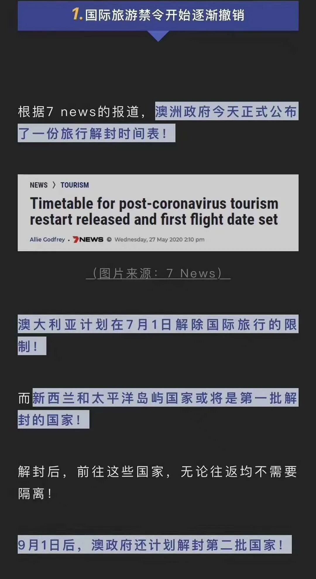 意思就是澳洲7月开放边境,9月前很可能会增加更多国家,这或许就包括之前政府透露的中国。