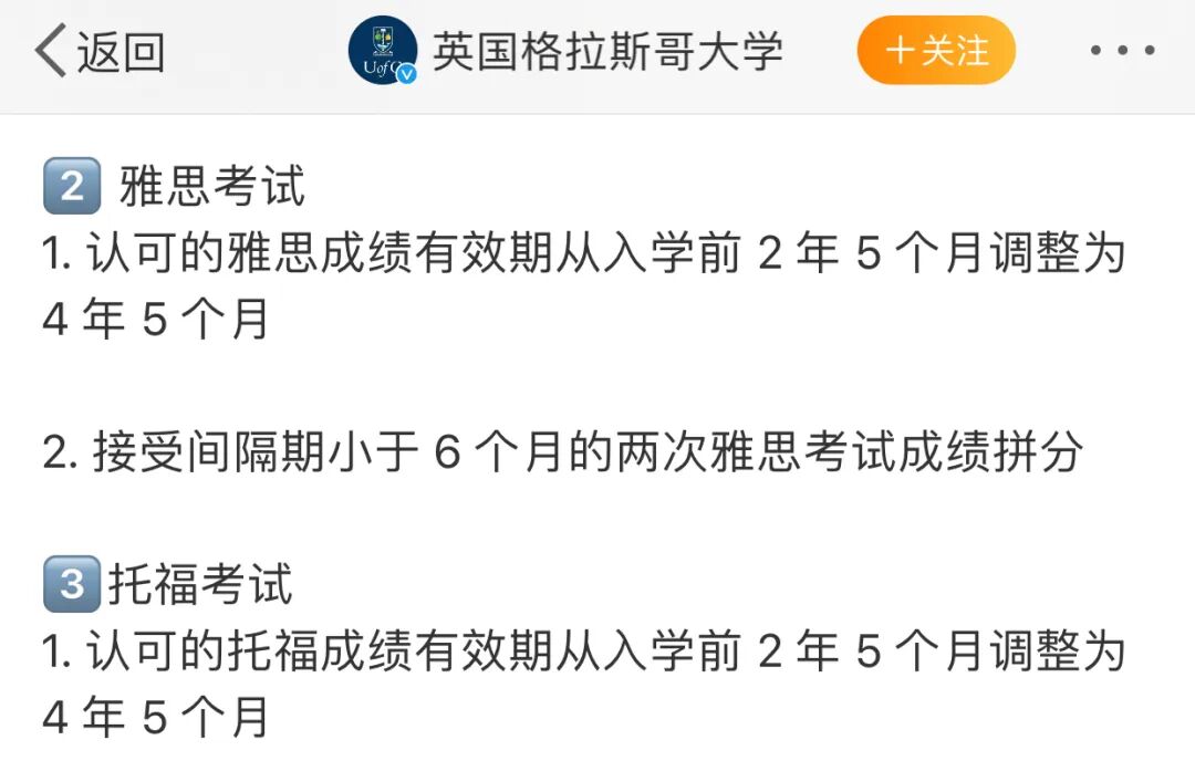 继伯明翰大学接受了CET-6后,英国的格拉斯哥大学紧随其后,史无前例地出台了接受雅思拼分的政策: