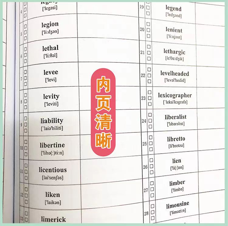 默写本正面是单词,同学们在使用中可以把中文解释写出来,增强记忆。