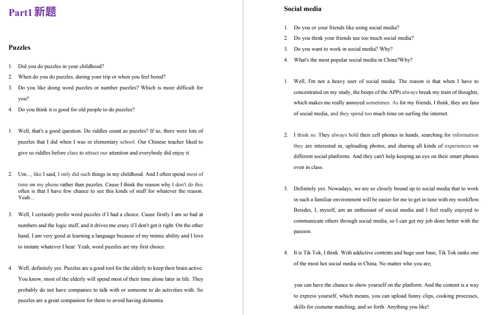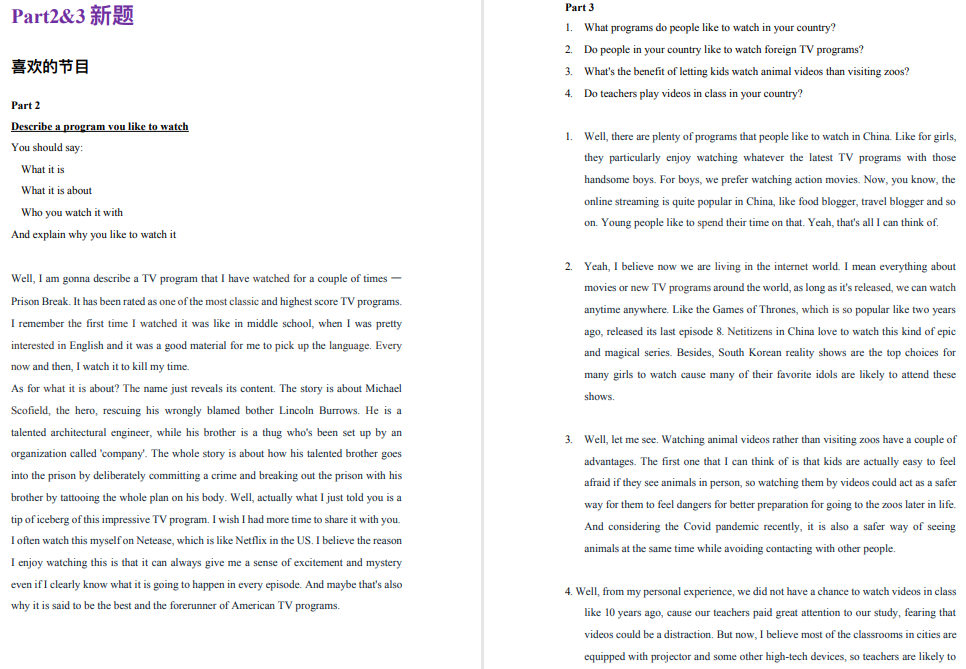 全部雅思口语题还都配有原创的雅思口语高分回答模板!