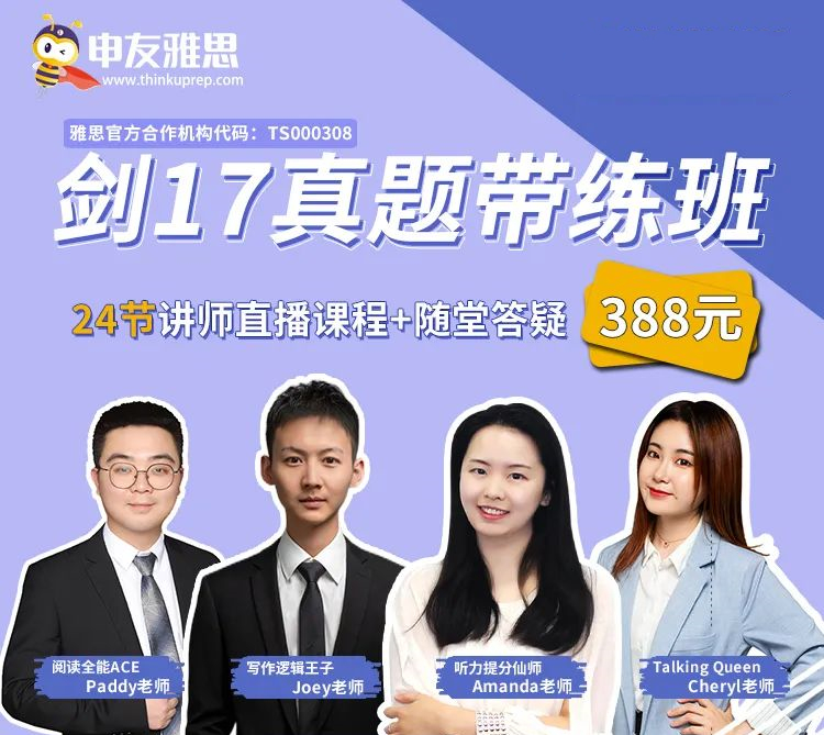 【雅思剑17真题带练班】24节逐题解析直播课 + 随堂答疑 限时特惠:¥388!添加微信报名:cdb03499756